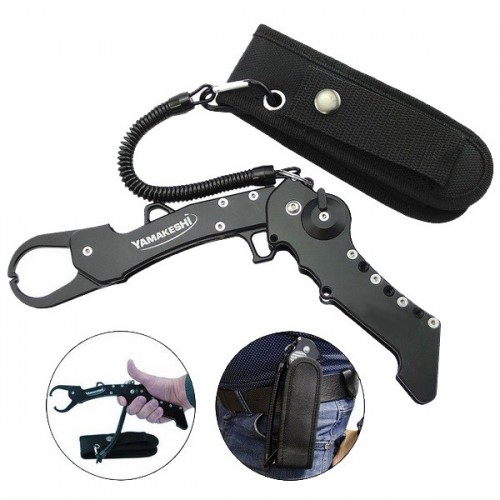 Складной липгрип (фишгрип) Yamakeshi YMLG-186 из композитного сплава. Цвет черный. В комплекте чехол и витой шнур.