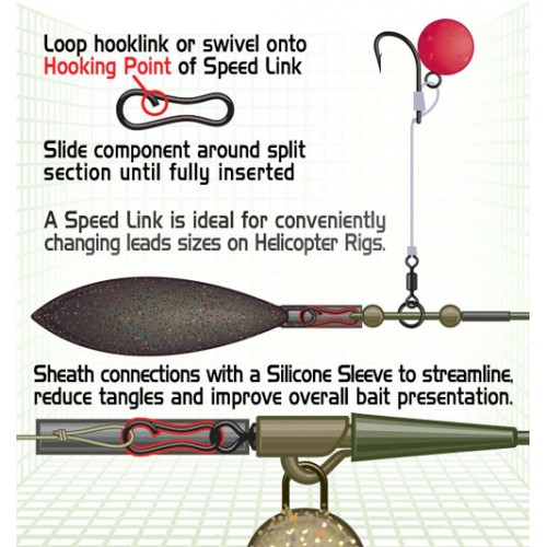 COVERT SPEED LINKS ANTI GLARE - очень прочные и надежные металлические застежки со специальным антикоррозийным покрытием. Края обработаны таким образом, что не наносят повреждений леске. Длина 12,5 мм.