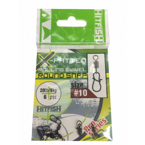 Застежка Hitfish X-Patten rolling swivel wifh round snap с вертлюгом №10 6шт