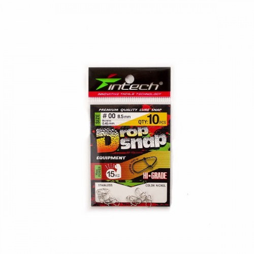 Карабин серии Drop Snap от торговой марки Intech выполнен в простой классической форме, которая упрощает монтаж и делает его надежным. Прочность карабина позволит оснастке выдержать нагрузки, которые возникают при рывках крупной рыбы. В зависимости от предполагаемой нагрузки, в ассортименте Intech можно подобрать карабин с нужным показателем разрывной нагрузки: от 8 до 36 кг.